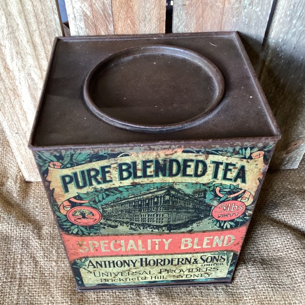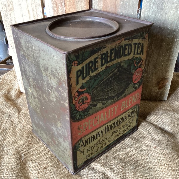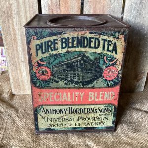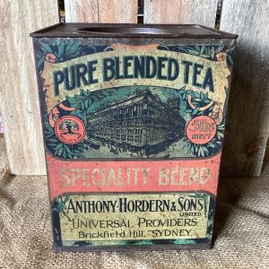 Lovely rare Anthony Horden 5lb Tea Tin. Graphics on both sides in overall nice condition.